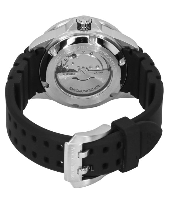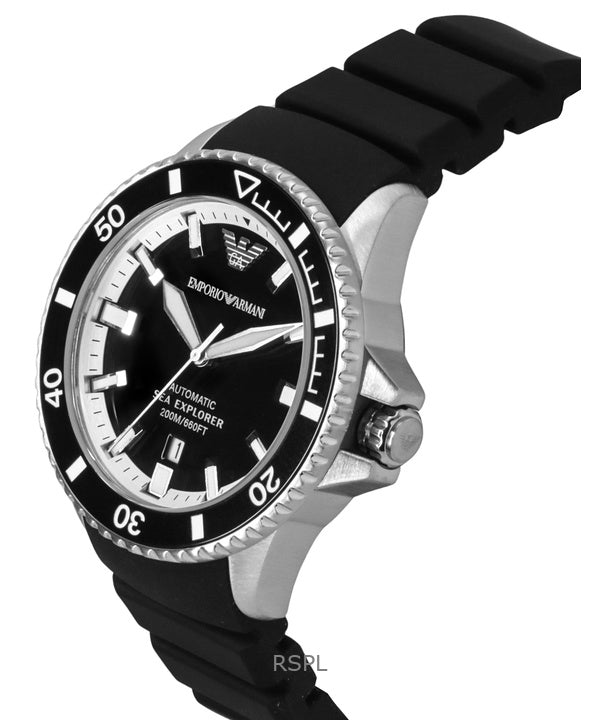 Emporio Armani Sea Explorer Silikonarmband Schwarzes Zifferblatt Automatische Taucheruhr AR60078 200M Herrenuhr