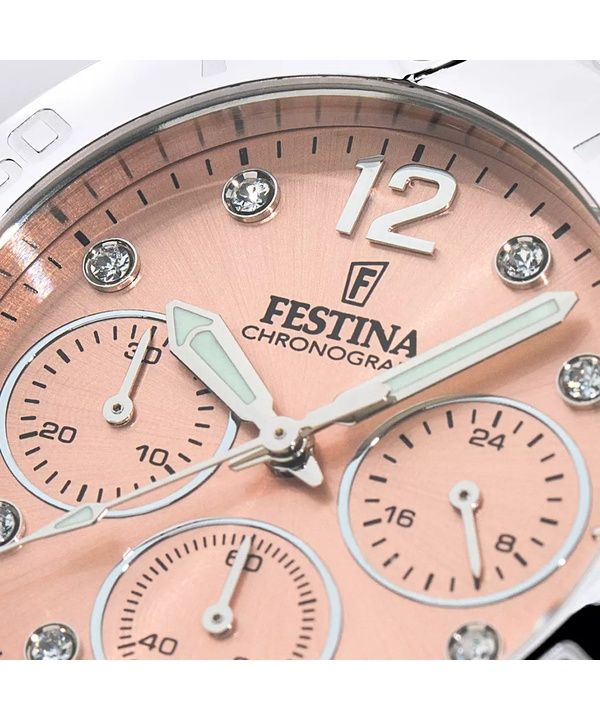 Festina Boyfriend Chronograph KristAlle Akzente Rosa Zifferblatt Quarz F20603-7 100M Damenuhr