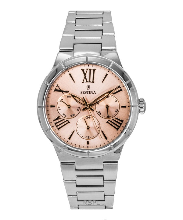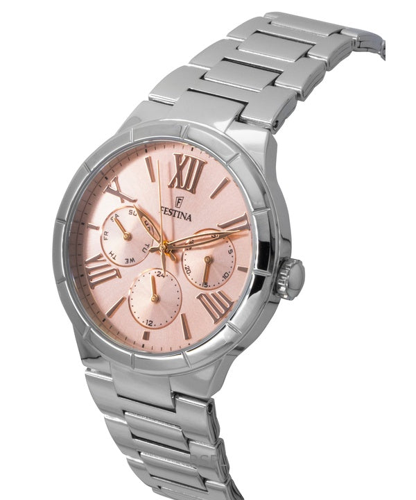 Festina Boyfriend Edelstahl Multifunktions Rosa Zifferblatt Quarz F16716-3 Damenuhr
