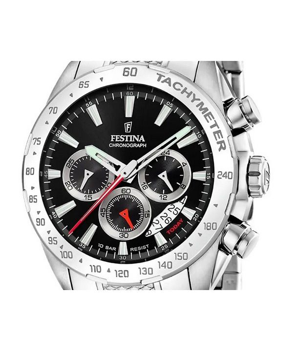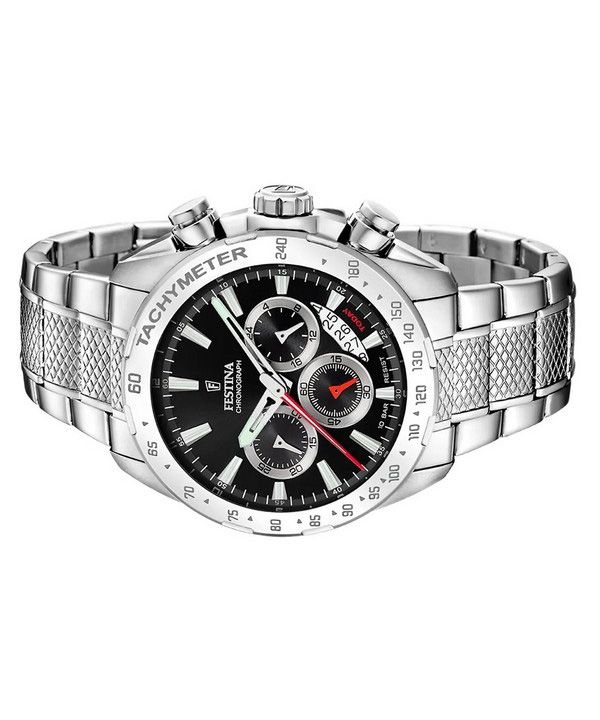 Festina Chrono Sport Edelstahl schwarzes Zifferblatt Quarz F20668-4 100M Herrenuhr