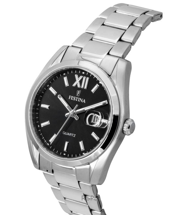 Festina Classic Edelstahl Schwarzes Zifferblatt Quarz F20707-6 Herrenuhr