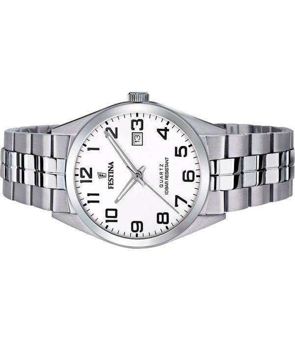 Festina Classics Edelstahl weißes Zifferblatt Quarz F20437-1 100M Herrenuhr