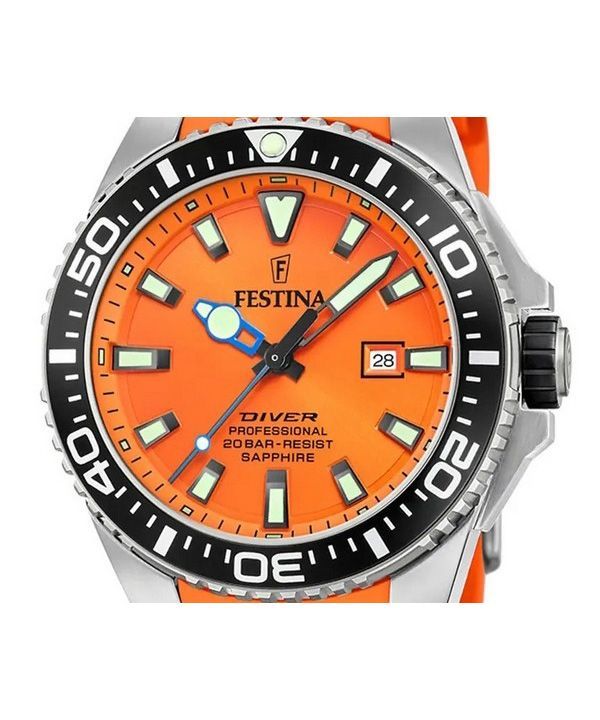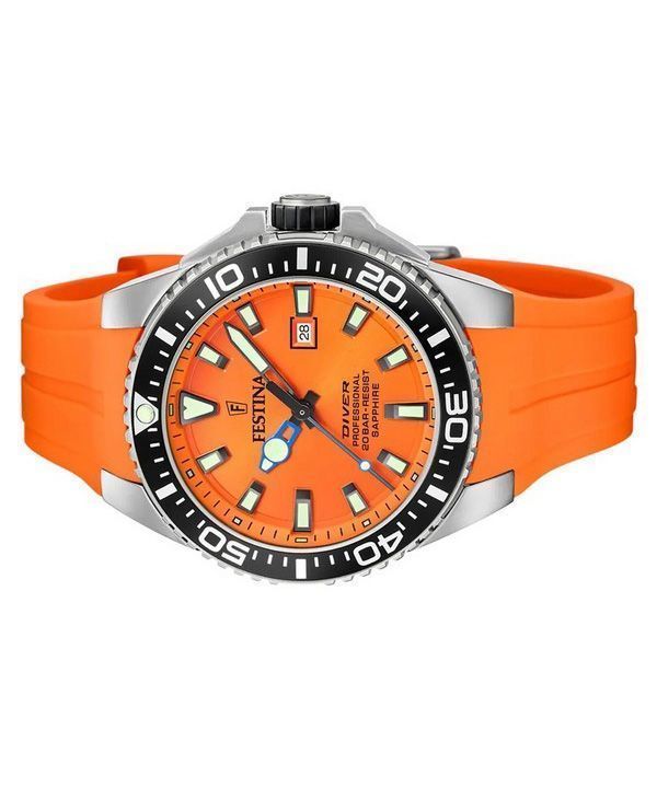 Festina Diver Kautschukarmband, oranges Zifferblatt, Quarz, F20664-4, 200 m, Herrenuhr