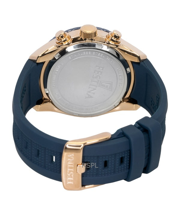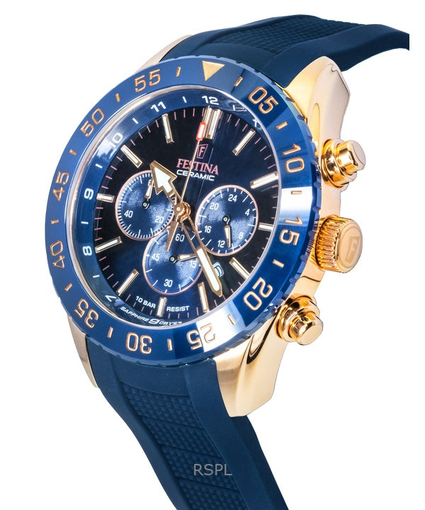 Festina Keramik Chronograph Kautschukarmband Blaues Zifferblatt Quarz F20516-1 100M Herrenuhr