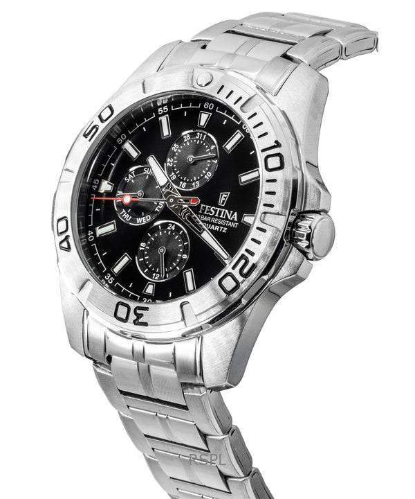 Festina Multifunktions-Quarzuhr aus Edelstahl mit schwarzem Zifferblatt F20445-3, 100 m, Herrenuhr