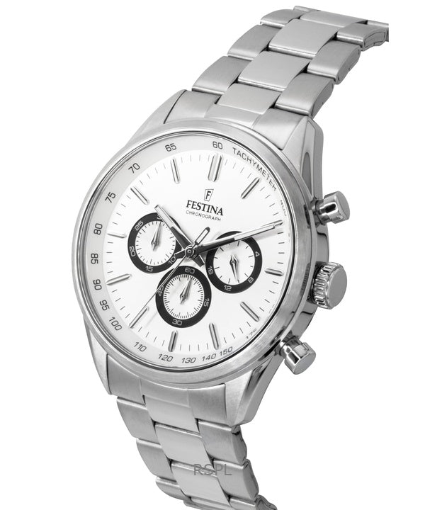 Festina Timeless Chronograph Edelstahl Weißes Zifferblatt Quarz F16820-Q Herrenuhr