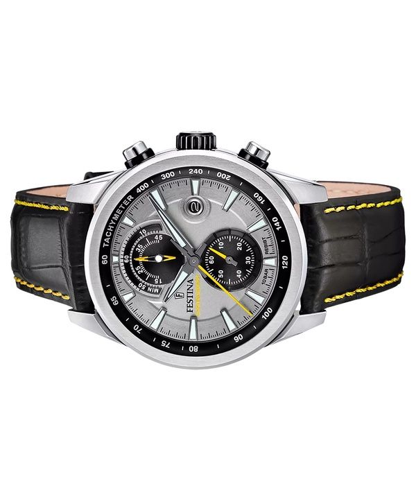 Festina Timeless Chronograph Lederarmband graues Zifferblatt Quarz F20695-4 100M Herrenuhr