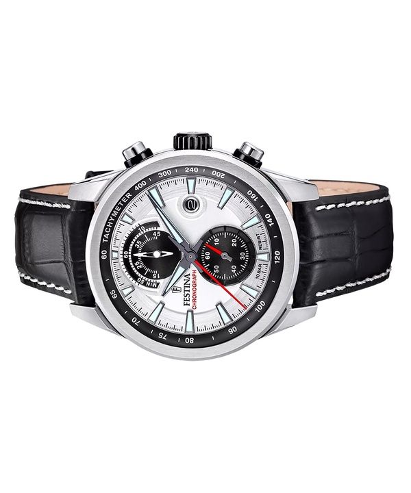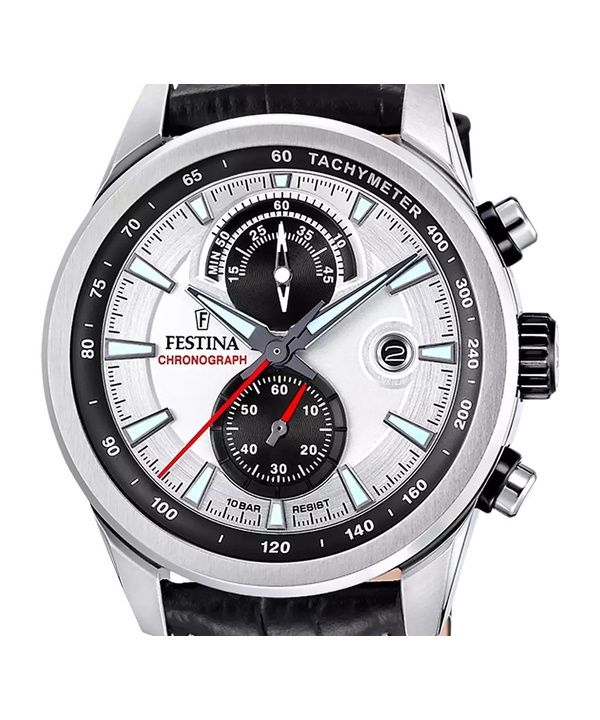 Festina Timeless Chronograph Lederarmband Silbernes Zifferblatt Quarz F20695-1 100M Herrenuhr