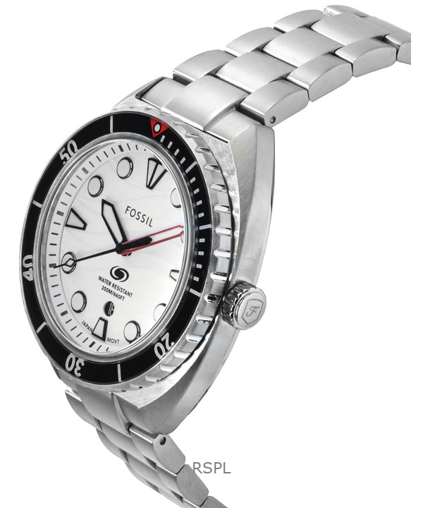 Fossil Breaker Edelstahl weißes Zifferblatt Quarz Taucheruhr FS6063 200M Herrenuhr