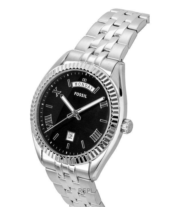Fossil Campbell Herrenuhr aus Edelstahl mit schwarzem Zifferblatt und Quarzwerk FS6139