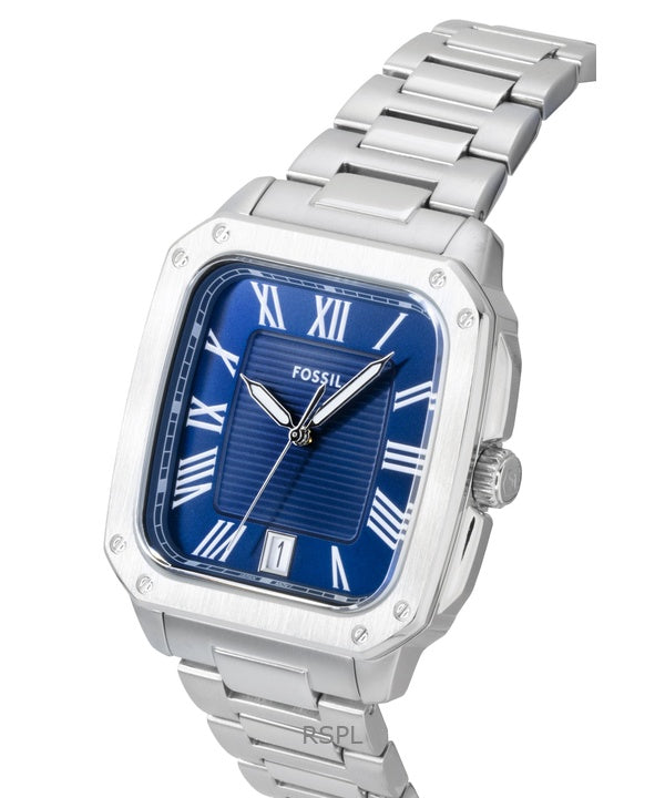 Fossil Crosby Herrenuhr aus Edelstahl mit blauem Zifferblatt und Quarzwerk, Modell FS6121