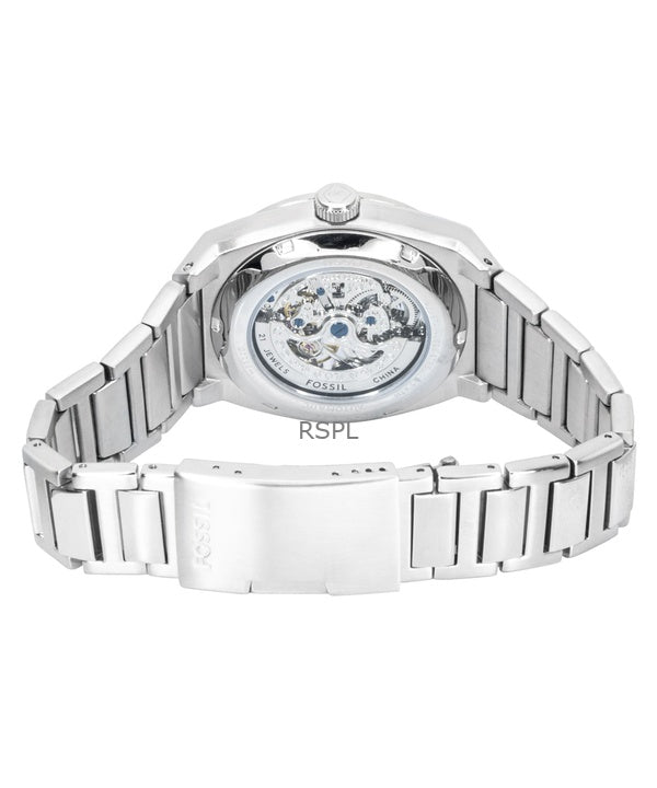 Fossil Everett Herrenuhr aus Edelstahl mit blauem Skelettzifferblatt und Automatikwerk ME3220