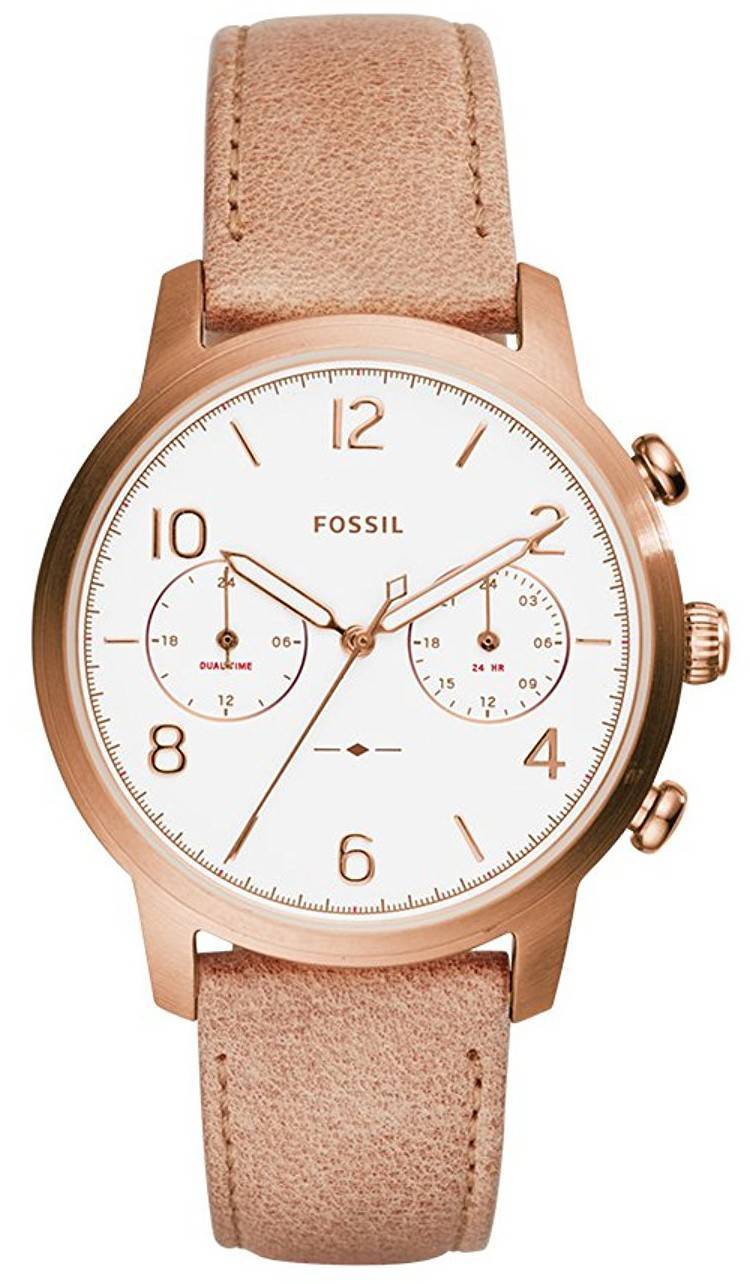Fossilen halbhart Multifunktions Dual Time Quarz ES4238 Damenuhr