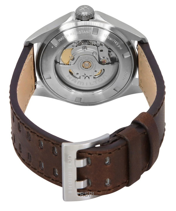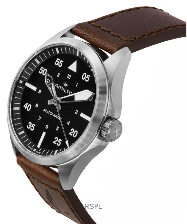 Hamilton Khaki Aviation Pilot Lederarmband Schwarzes Zifferblatt Automatik H76305530 100M Herrenuhr