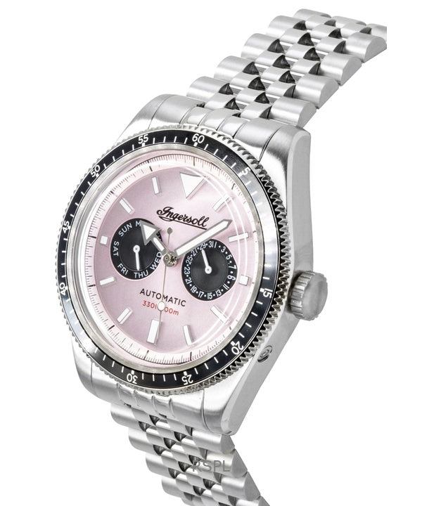 Ingersoll Outlaw Edelstahl Herrenuhr mit rosa Zifferblatt, Automatik, Modell I17201