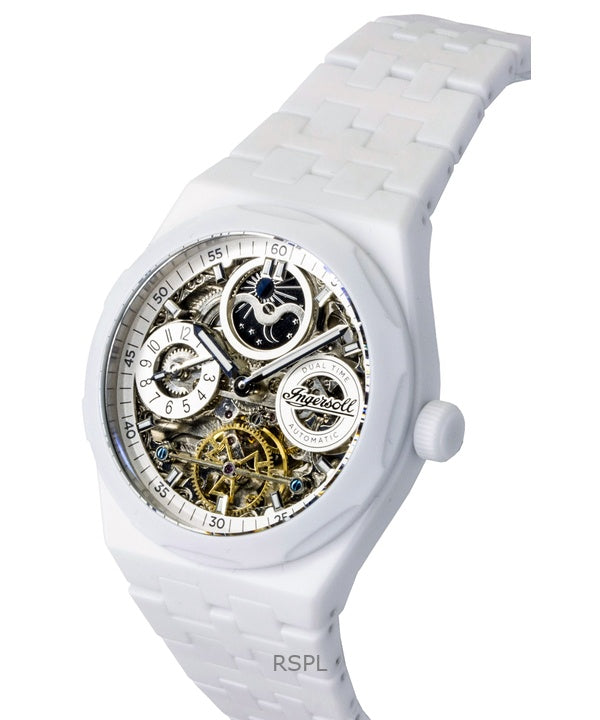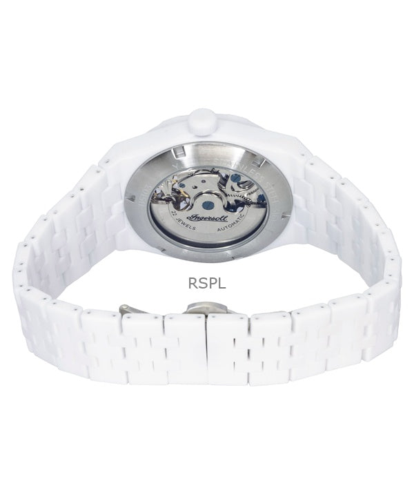 Ingersoll The Broadway Herrenuhr mit weißem Keramikzifferblatt und Skelett-Zifferblatt, Automatik, Modell I15103