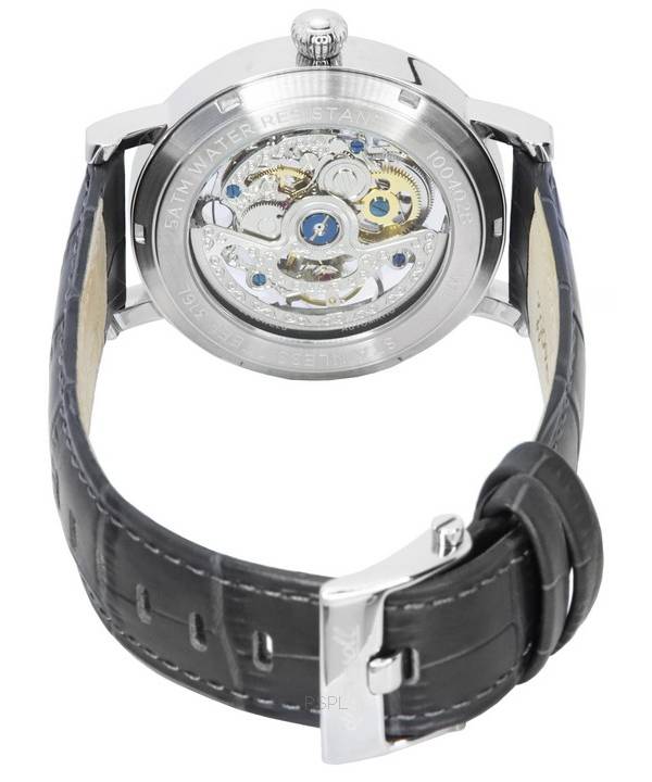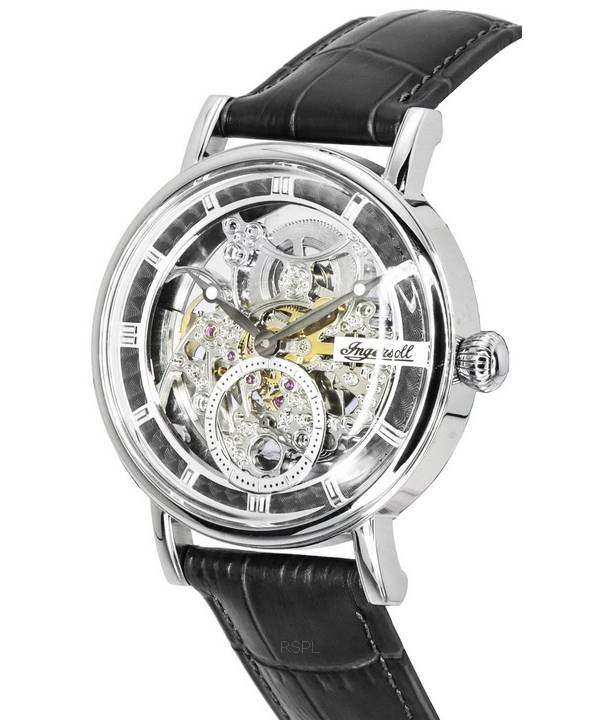 Ingersoll The Herald Automatik-Herrenuhr I00402B mit Lederarmband und silbernem Skelettzifferblatt