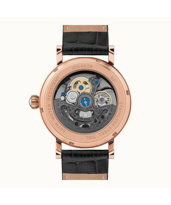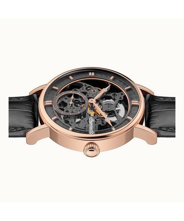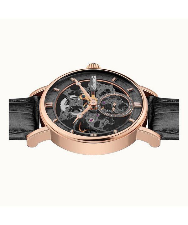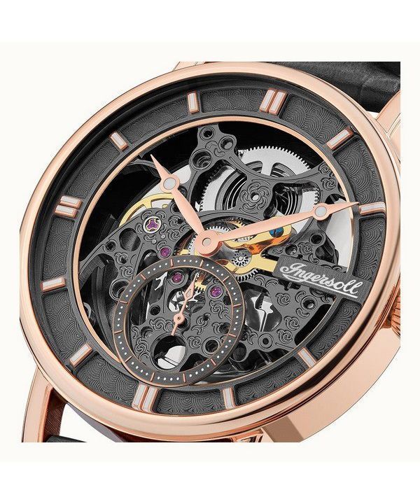 Ingersoll The Herald Automatik-Herrenuhr I00403B mit Lederarmband und schwarzem Skelett-Zifferblatt