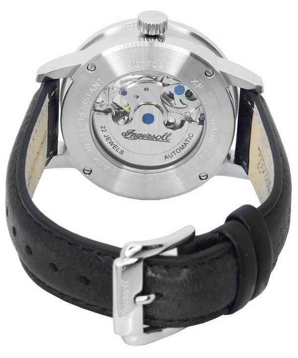 Ingersoll The Jazz Sun and Moon Phase Lederarmband Skelett Silber Zifferblatt Automatik I07701 Herrenuhr