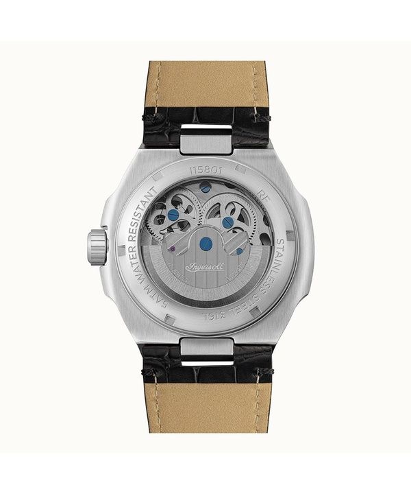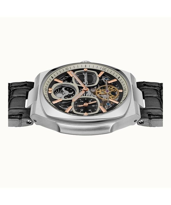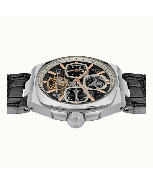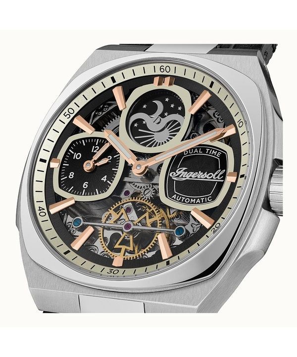 Ingersoll The Spirit Mondphase Lederarmband Schwarzes Skelett-Zifferblatt Automatik I15801 Herrenuhr
