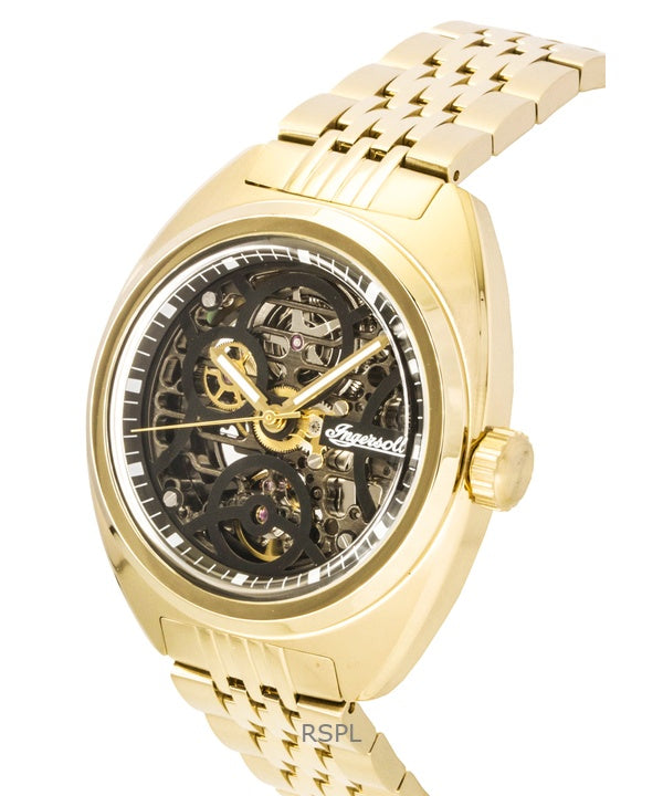 Ingersoll The Wrangler Herrenuhr, goldfarben, Edelstahl, schwarzes Skelettzifferblatt, Automatik, Modell I16902