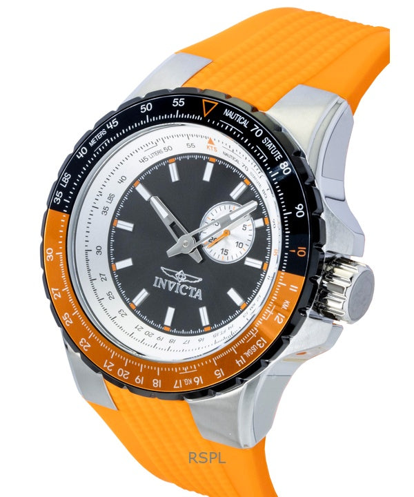 Invicta Aviator Herrenuhr mit orangefarbenem Silikonarmband, gunmetalfarbenem Zifferblatt, Quarzwerk, Modell 49721, wasserdicht bis 100 m