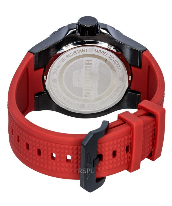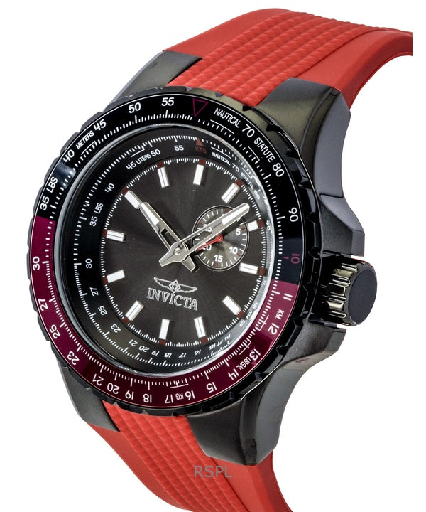 Invicta Aviator Herrenuhr mit rotem Silikonarmband, gunmetalfarbenem Zifferblatt, Quarzwerk, Modell 49724, wasserdicht bis 100 m