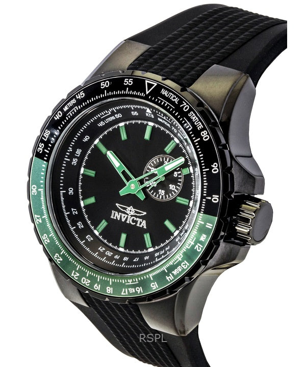 Invicta Aviator Herrenuhr mit schwarzem Silikonarmband, schwarzem Zifferblatt, Quarzwerk, Modell 49731, wasserdicht bis 100 m