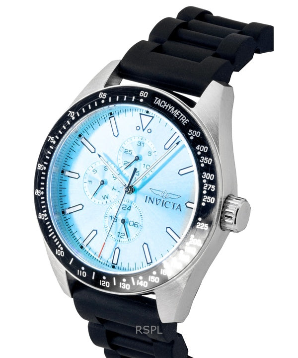 Invicta Aviator Herrenuhr mit Silikonarmband, hellblauem Zifferblatt, Quarzwerk, Modell 48856, wasserdicht bis 100 m