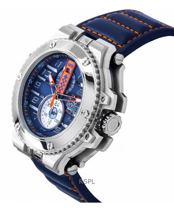 Invicta Racing Downforce GMT Lederarmband Blaues Zifferblatt Quarz 47378 200M Herrenuhr