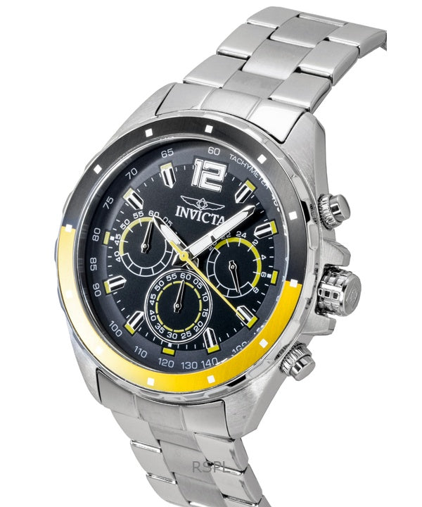 Invicta Speedway Chronograph GMT Edelstahl Schwarzes Zifferblatt Quarz 49365 Herrenuhr