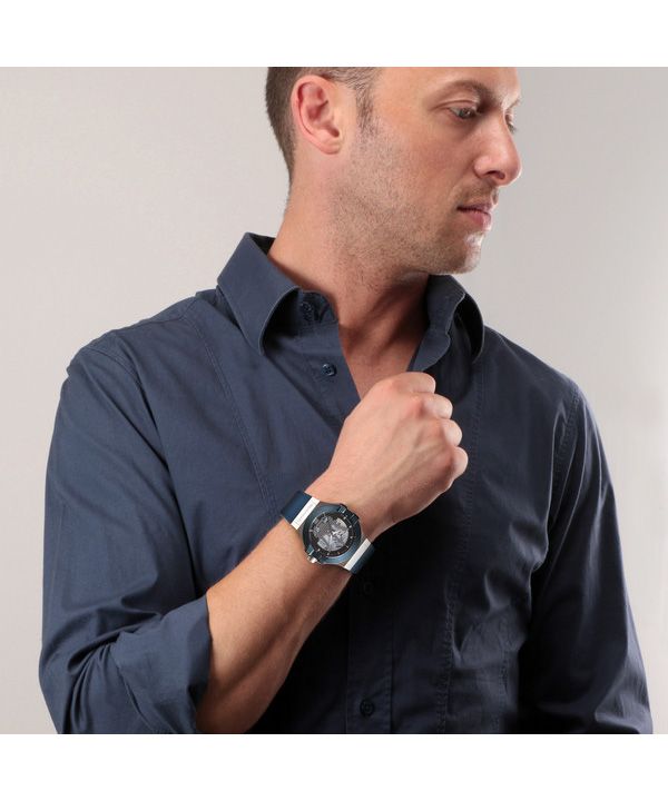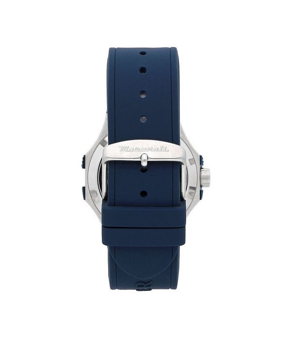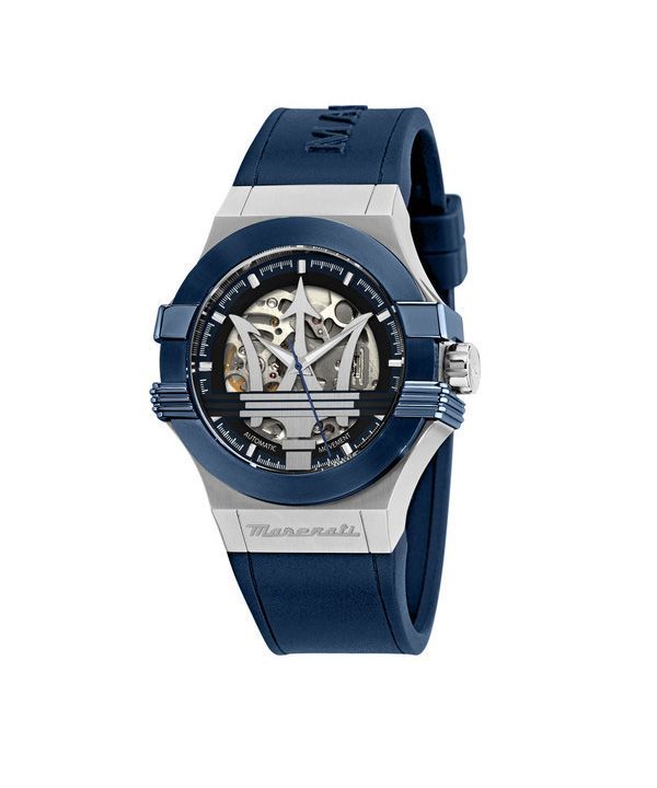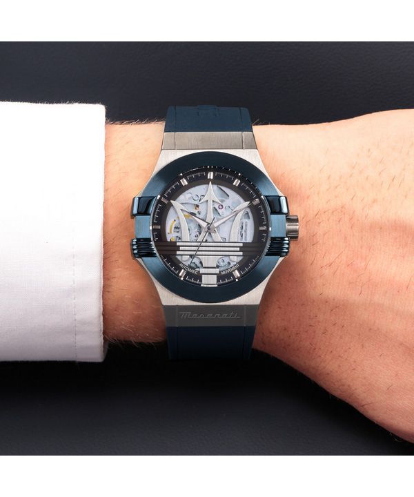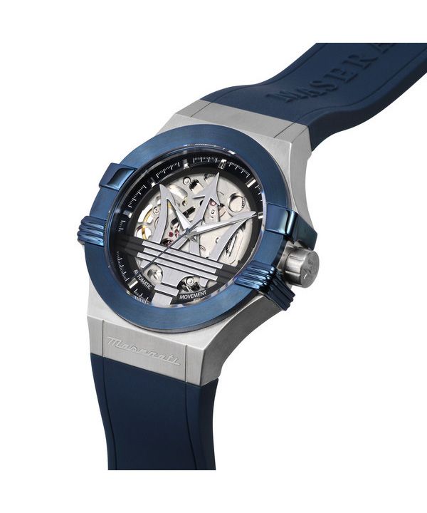 Maserati Potenza, blaues Kautschukarmband, silbernes Skelett-Zifferblatt, automatische Herrenuhr R8821108035, 100 m