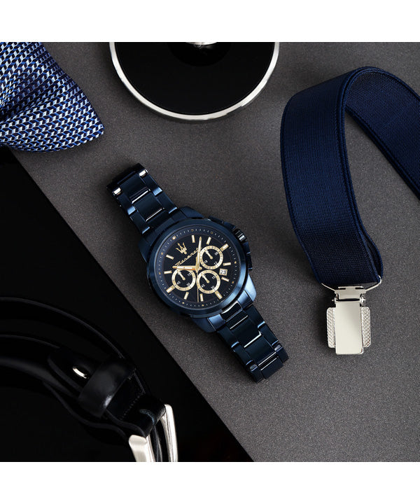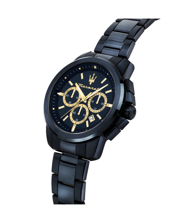 Maserati Successo Chronograph, Edelstahl, blaues Zifferblatt, Quarz, R8873621040, Herrenuhr