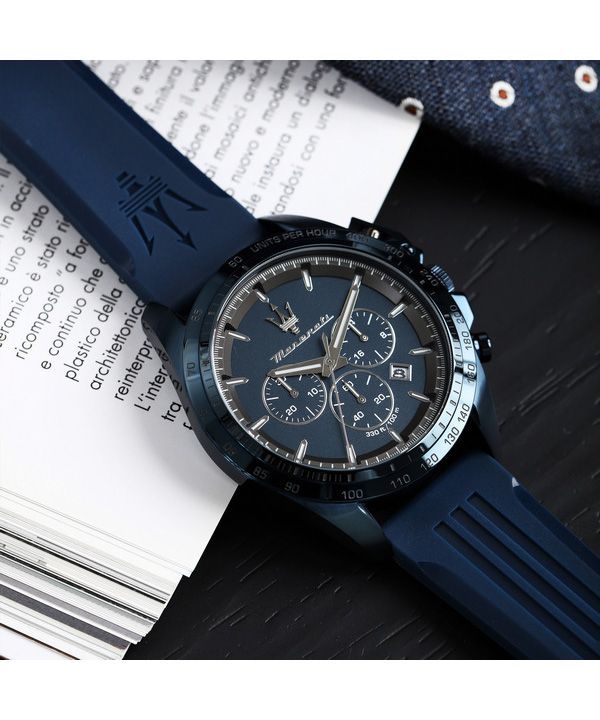 Maserati Traguardo Limited Edition Chronograph, Kautschukarmband, blaues Zifferblatt, Quarz, R8871612042, 100 m, Herrenuhr