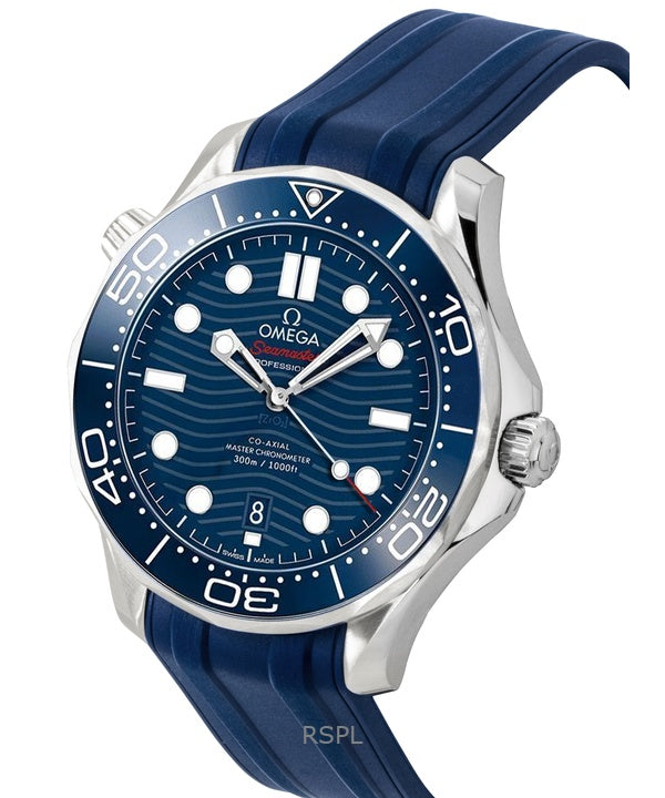 Omega Seamaster Kautschukarmband, blaues Zifferblatt, automatische Taucheruhr 210.32.42.20.03.001, 300 m, Herrenuhr