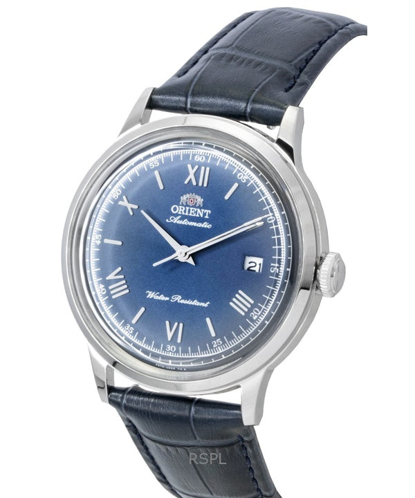 Orient Bambino Classic Herrenuhr mit Lederarmband, marineblauem Zifferblatt und Automatikwerk (RA-AC0024L)