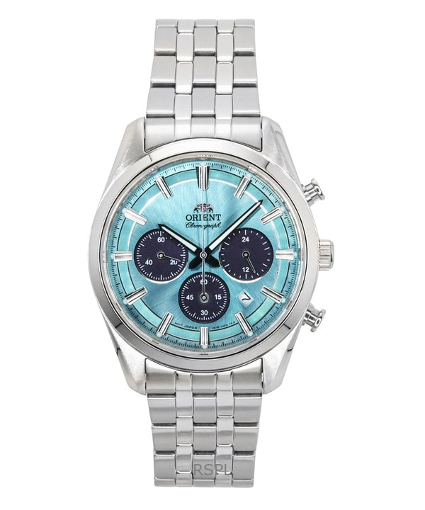 Orient Contemporary Chronograph Edelstahl Himmelblaues Zifferblatt Quarz RA-TX0304L Herrenuhr