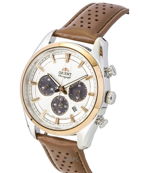 Orient Contemporary Chronograph Lederarmband Weißes Zifferblatt Quarz RA-TX0306S Herrenuhr