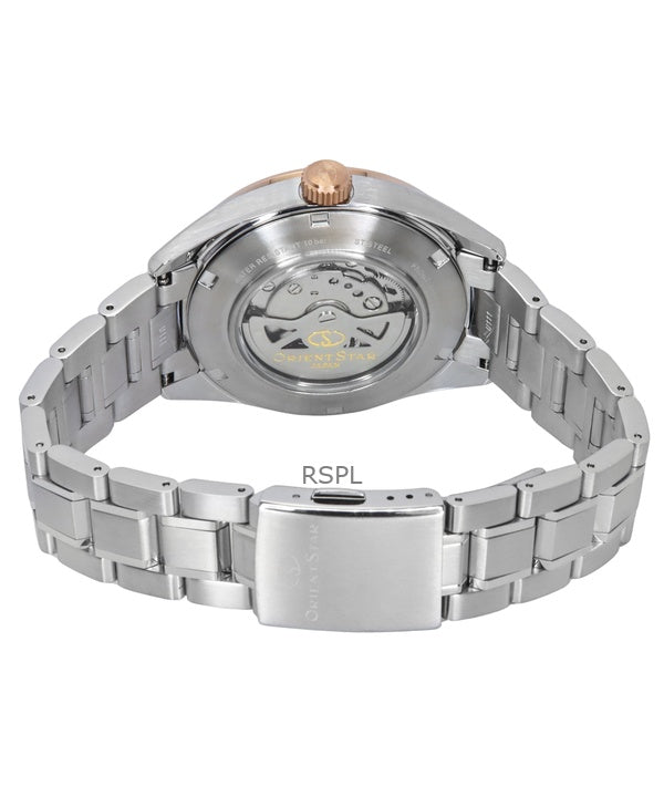 Orient Star Zeitgenössische Edelstahl-Skelett-Herrenuhr mit elfenbeinfarbenem Zifferblatt und automatischem RE-AV0123G-100M