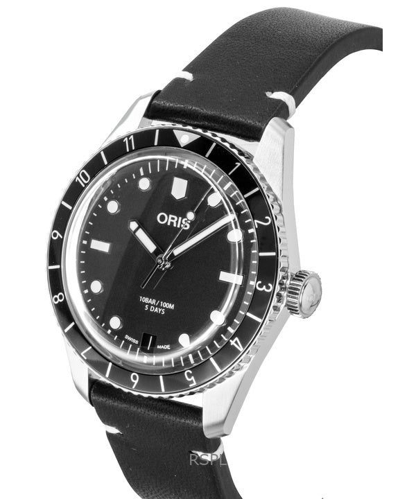 Oris Divers Sixty Five 12H Lederarmband Schwarzes Zifferblatt Automatik 01 400 7772 4054-07 5 20 82 100M Herrenuhr