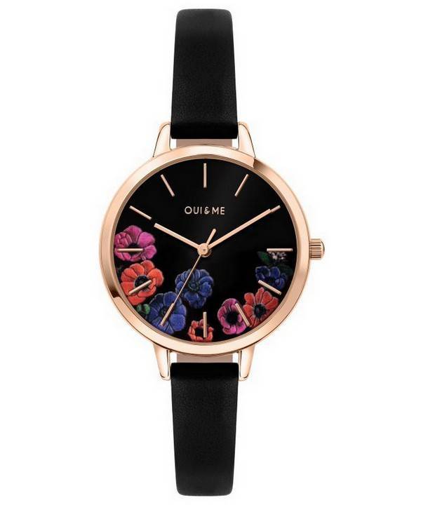 Oui & Me Petite Fleurette Schwarzes Zifferblatt Lederarmband Quarz ME010059 Damenuhr