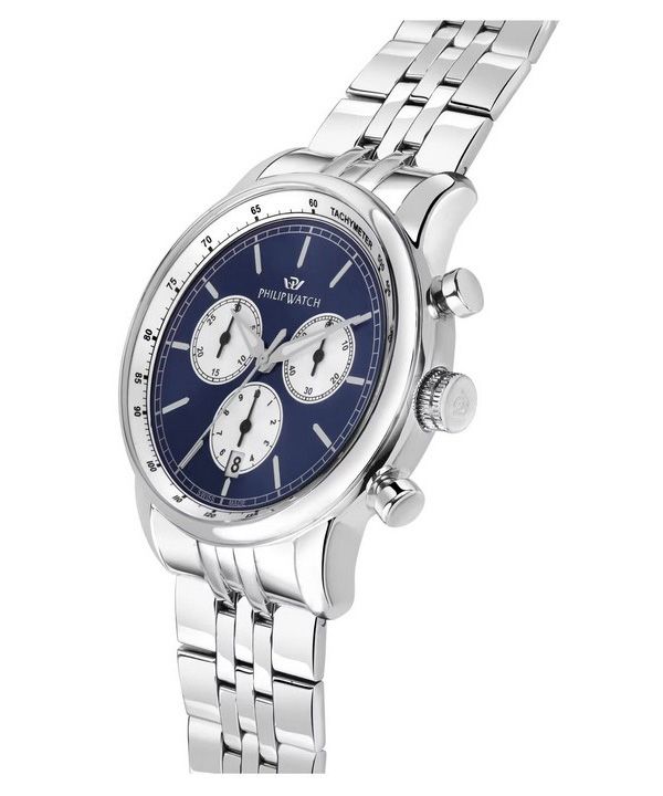 Philip Watch Anniversary Chronograph, Edelstahl, blaues Zifferblatt, Quarz, R8273650004, 100 m, Herrenuhr