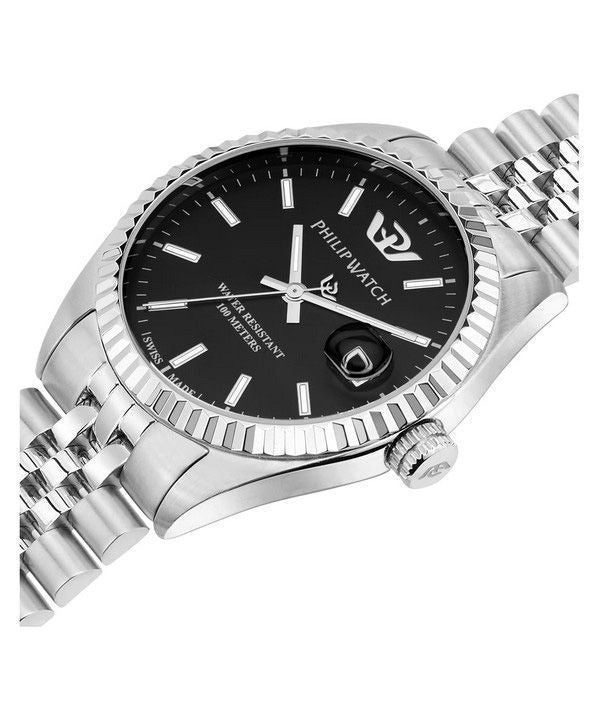 Philip Watch Caribe Urban Edelstahl schwarzes Sunray-Zifferblatt Quarz R8253597586 100M Damenuhr