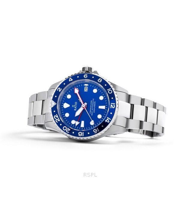 Ratio FreeDiver GMT-Serie Saphir Edelstahl blaues Zifferblatt Automatik RTF053 200M Herrenuhr