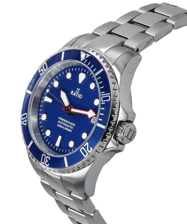 Ratio FreeDiver Saphir-Edelstahl, blaues Zifferblatt, automatische RTF043 200M-Herrenuhr