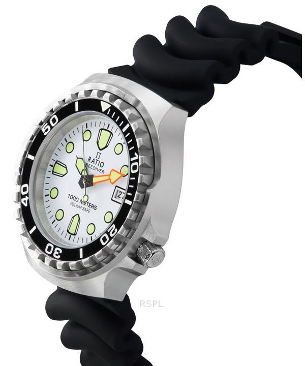 Ratio FreeDiver Version 02 Helium Safe 1000M Saphirquarz weißes Zifferblatt 1038EF102V-WHT-V02 Herrenuhr