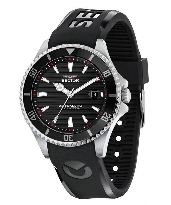 Sector 230 Automatico Herrenuhr mit Silikonarmband und schwarzem Zifferblatt, Automatik R3221161002, 100 m