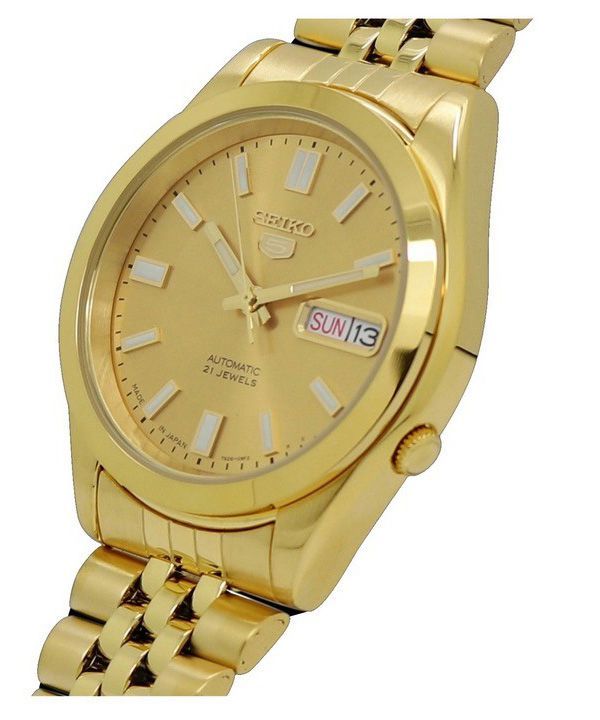 Seiko 5 Automatik-Herrenuhr SNKK20K1 aus goldfarbenem Edelstahl mit goldenem Zifferblatt und 21 Juwelen