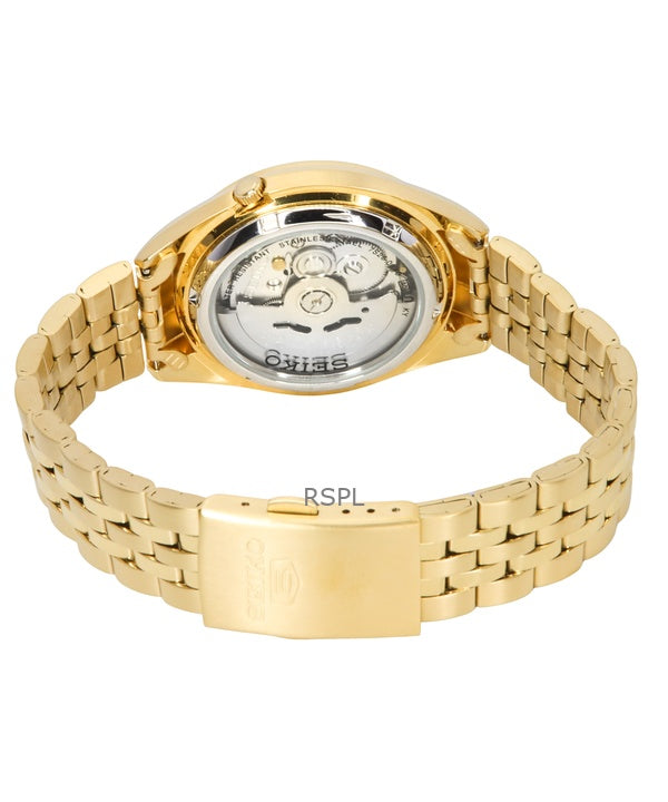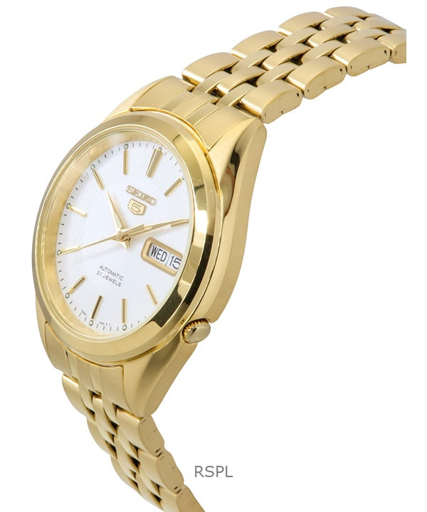 Seiko 5 Automatik-Herrenuhr SNKL26K1 aus goldfarbenem Edelstahl mit weißem Zifferblatt und 21 Juwelen