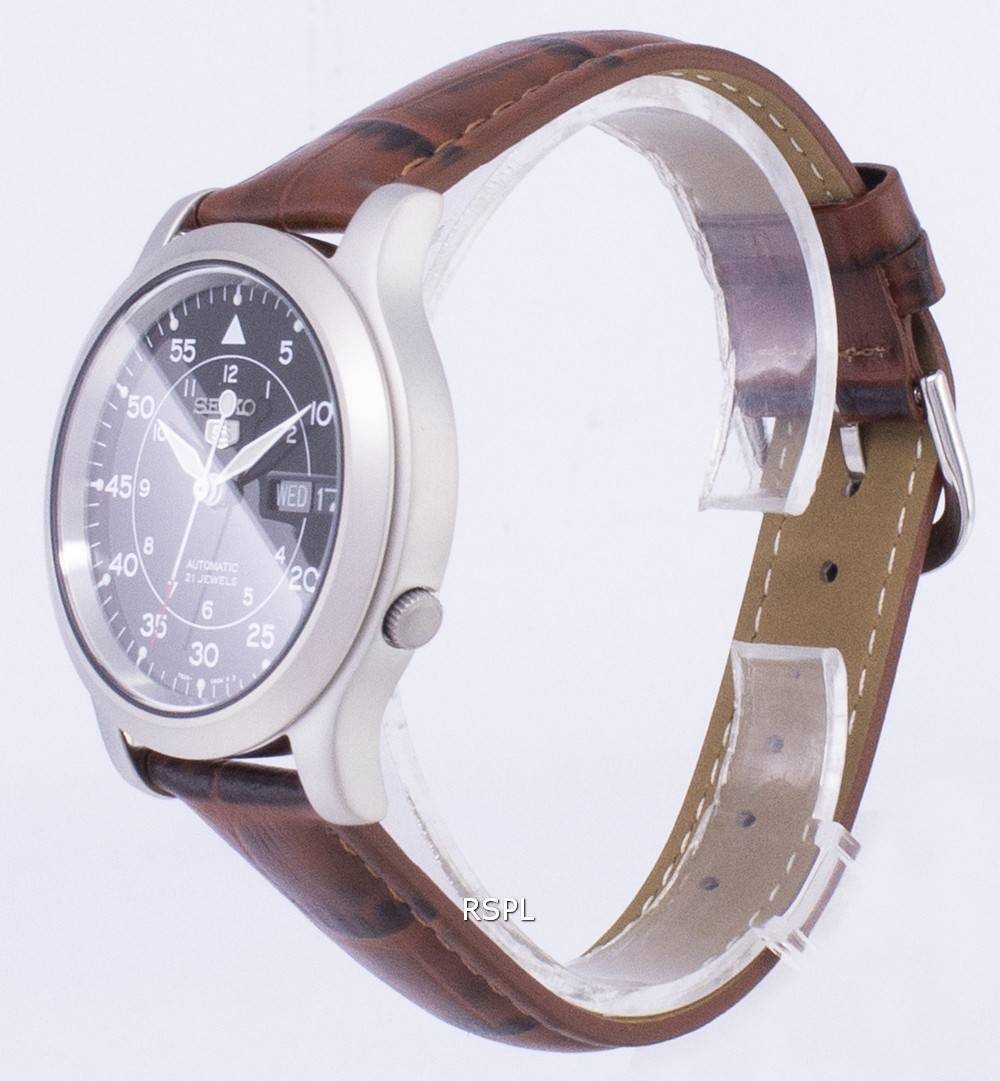 Seiko 5 militärische SNK809K2-SS2 automatische braun Leder Armband Herrenuhr